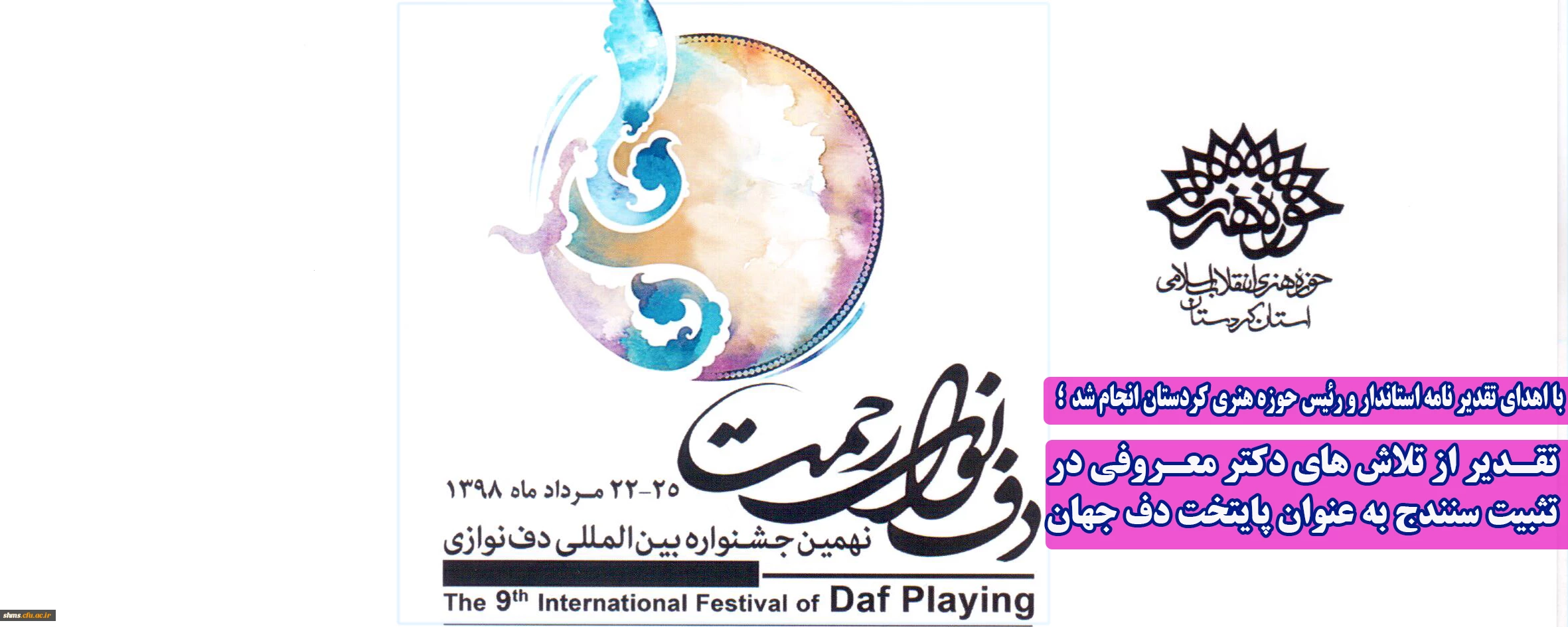 امتیاز دهید : تقـدیر از تلاش های دکتر معـروفی در تثبیت سنندج به عنوان پایتخت دف جهان 2 دوشنبه 11 شهریور 1398 ساعت 12:20