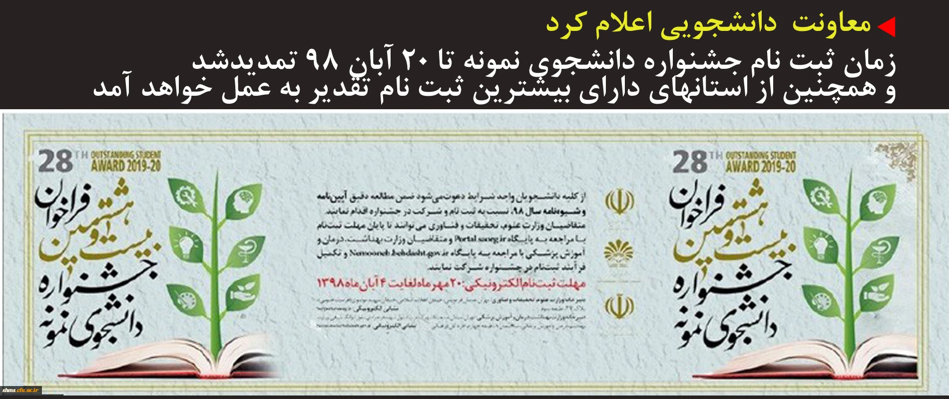 تمدید زمان ثبت نام جشنواره دانشجوی نمونه و تقدیر از استان های دارای بیشترین ثبت نام جشنواره دانشجوی نمونه 2