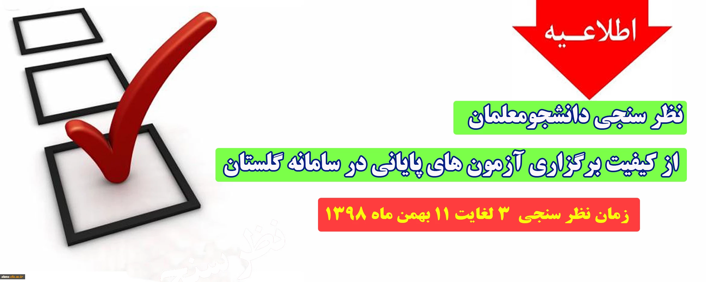 امتیاز دهید : نظر سنجی دانشجومعلمان از کیفیت برگزاری آزمون های پایانی در سامانه گلستان 2 سهشنبه 1 بهمن 1398 ساعت 11:58