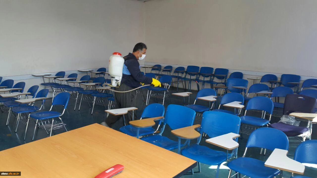 ضد عفونی مستمر فضاهای مختلف دانشگاه فرهنگیان کردستان ادامه دارد 8