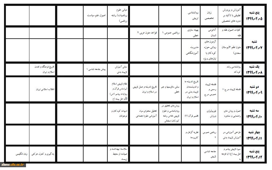 برنامه امتحانات آنلاین کارشناسی پیوسته پردیس شهید مدرس سنندج در سامانه LMS دانشگاه کردستان 5