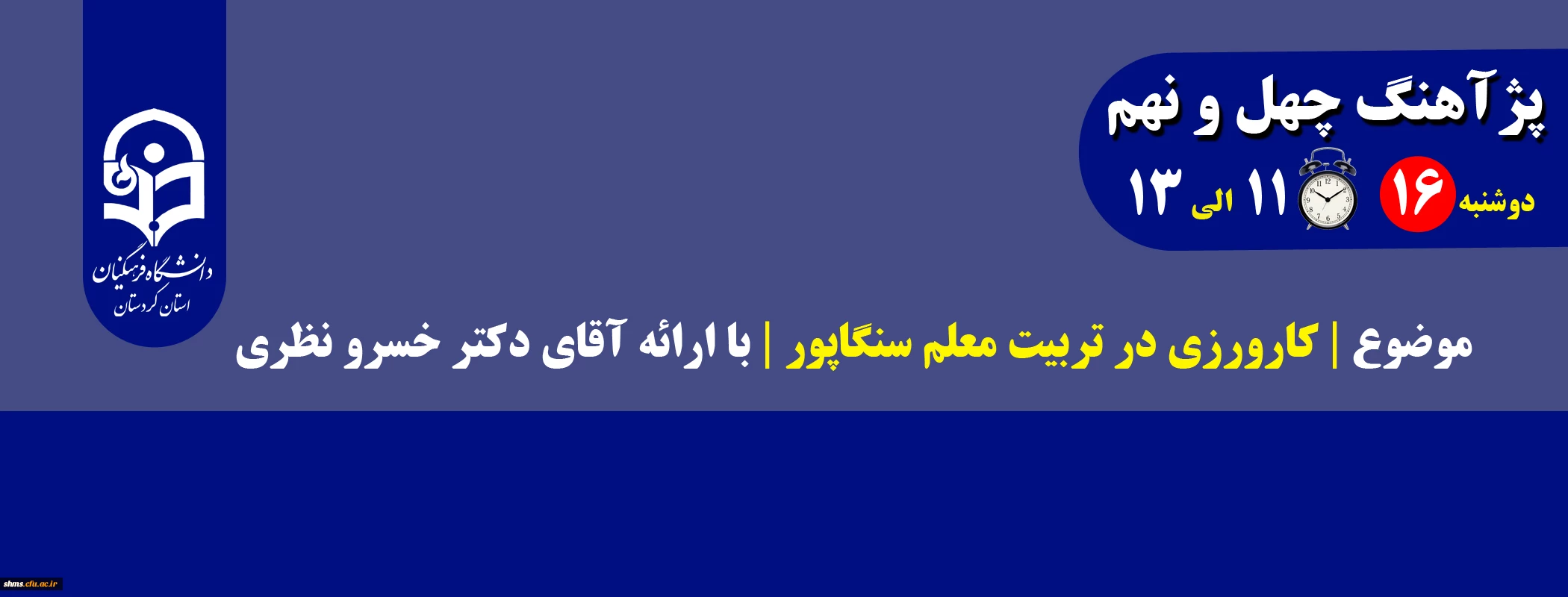امتیاز دهید : پژآهنگ چهل و نهم موضوع |کارورزی در تربیت معلم سنگاپور | با ارائه آقای دکتر خسرو نظری 2 یکشنبه 15 تیر 1399 ساعت 12:07