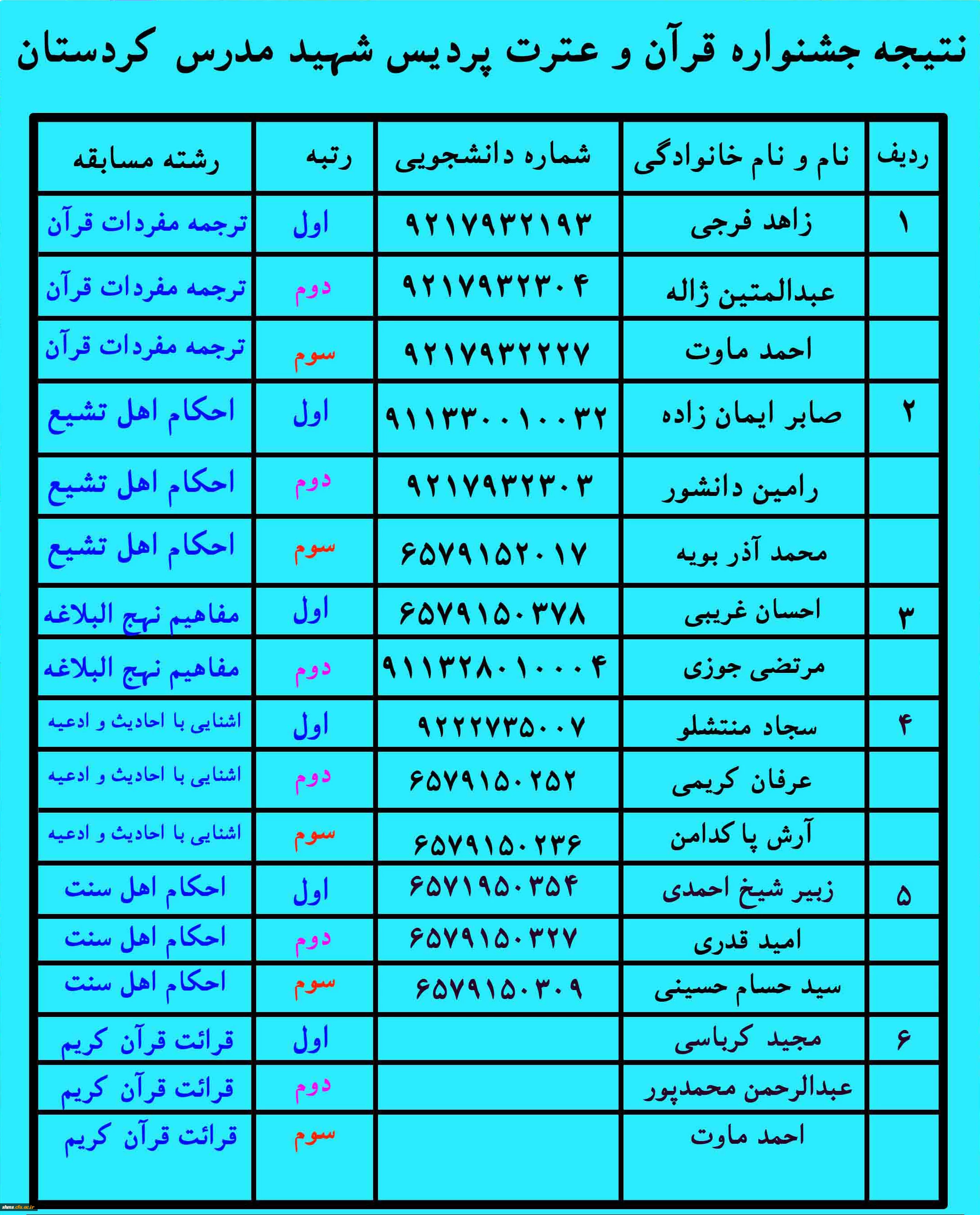 امتیاز دهید : بنا به اعلام امور فرهنگی نتایج جشنواره قرآن و عترت اعلام شد: 3 شنبه 5 اردیبهشت 1394 ساعت 16:17
