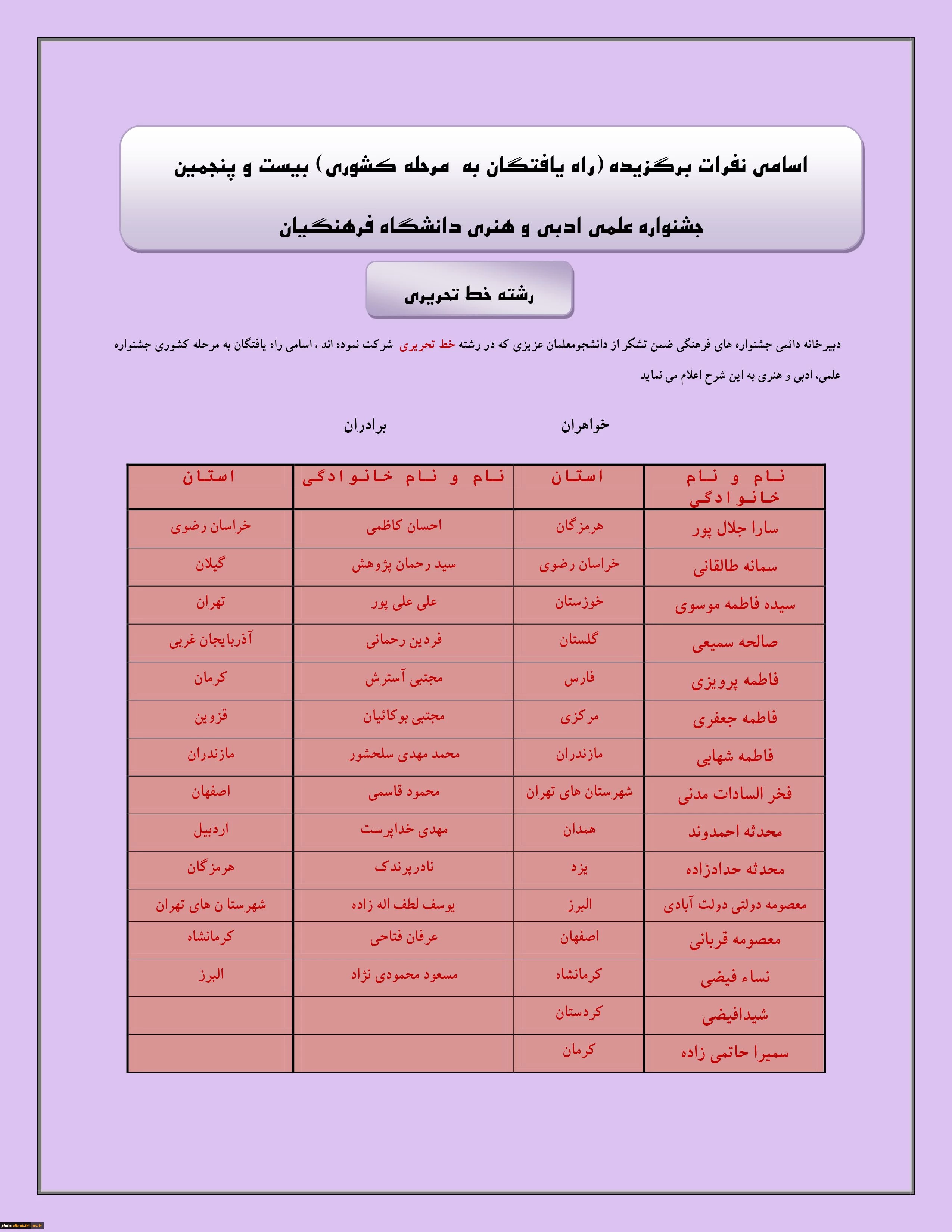 راه یافتن دانشجویان پردیس های استان کردستان : به مسابقات مرحله کشوری بیست و پنجمین جشنواره علمی و ادبی و هنری دانشگاه فرهنگیان 2