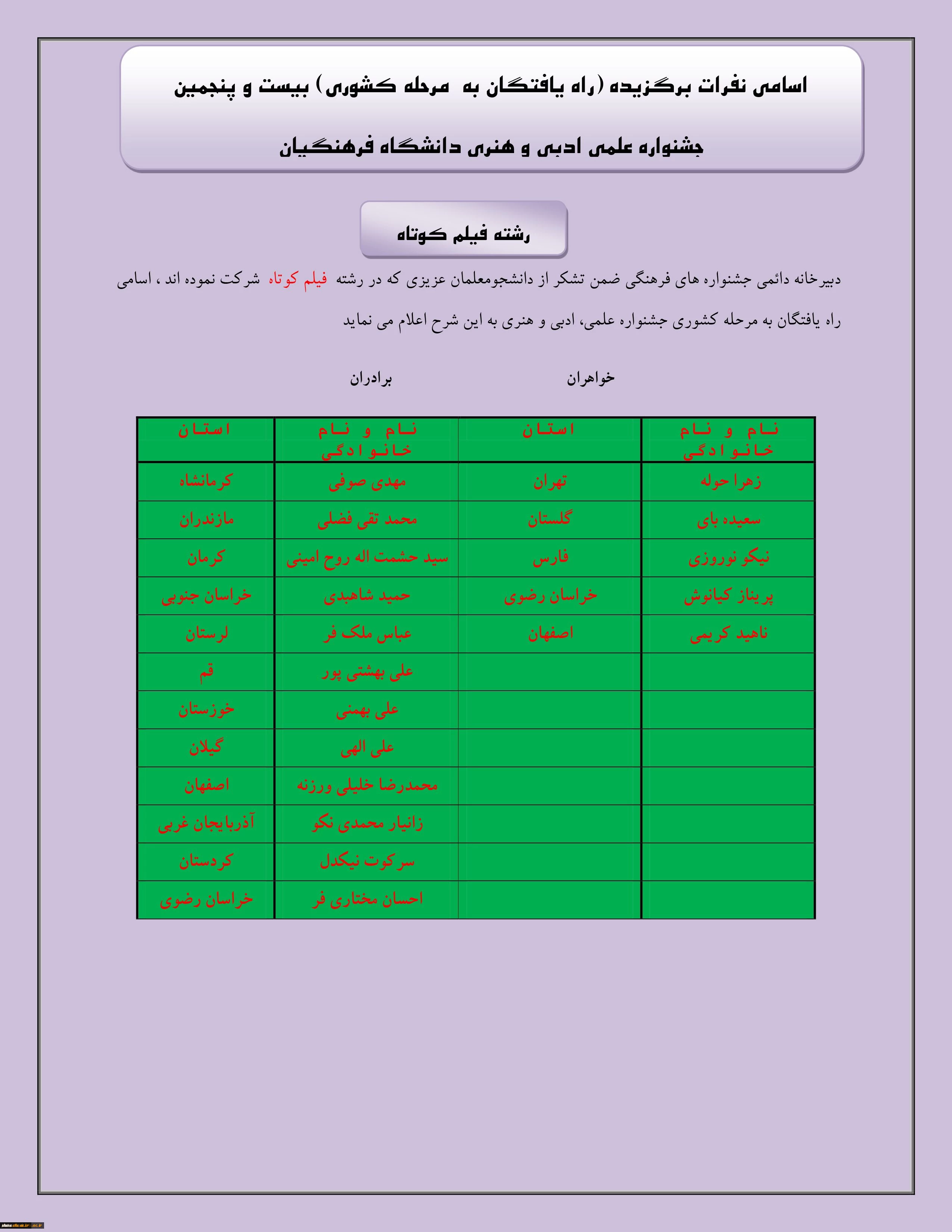راه یافتن دانشجویان پردیس های استان کردستان : به مسابقات مرحله کشوری بیست و پنجمین جشنواره علمی و ادبی و هنری دانشگاه فرهنگیان 6