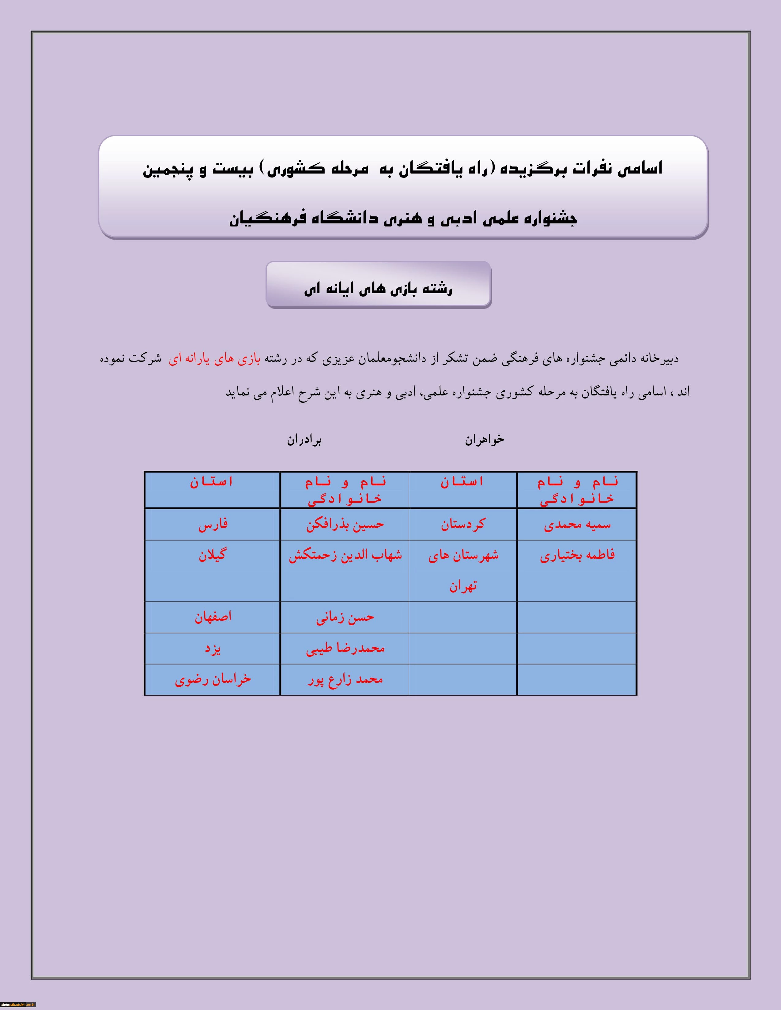 راه یافتن دانشجویان پردیس های استان کردستان : به مسابقات مرحله کشوری بیست و پنجمین جشنواره علمی و ادبی و هنری دانشگاه فرهنگیان 7