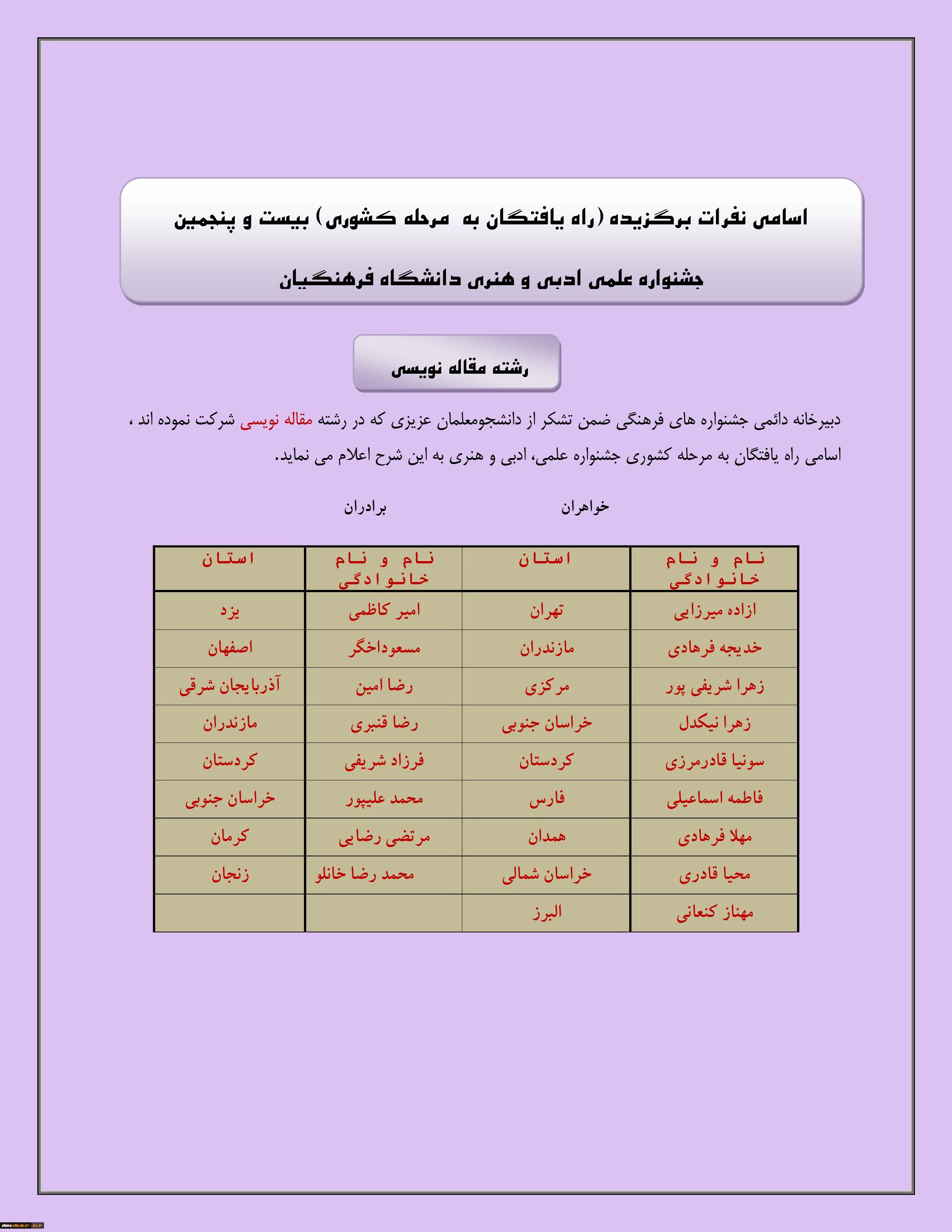 راه یافتن دانشجویان پردیس های استان کردستان : به مسابقات مرحله کشوری بیست و پنجمین جشنواره علمی و ادبی و هنری دانشگاه فرهنگیان 12